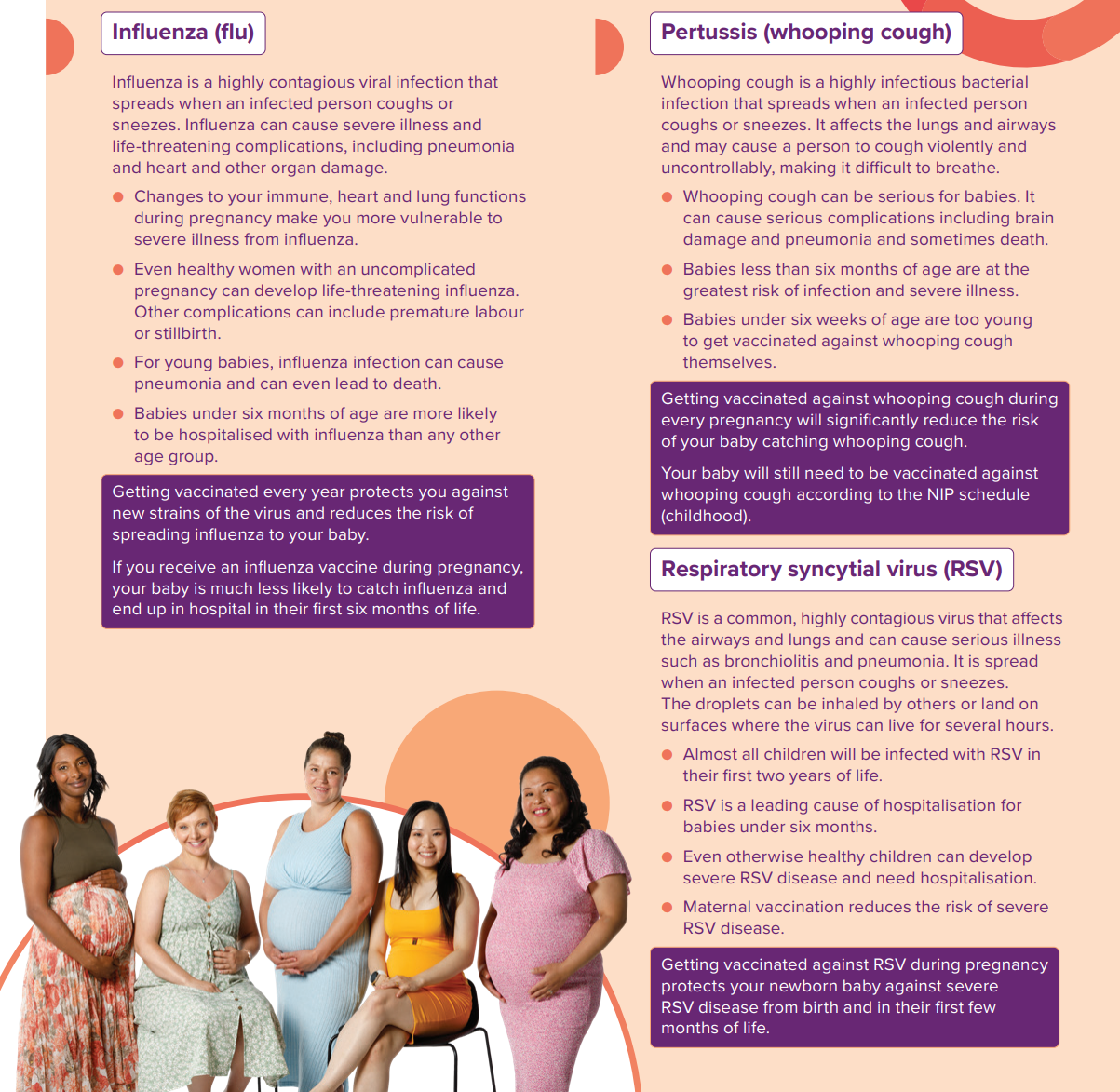 All vaccines recommended during pregnancy in Australia are safe for both you and your baby. They have been rigorously tested and are continually monitored for safety.